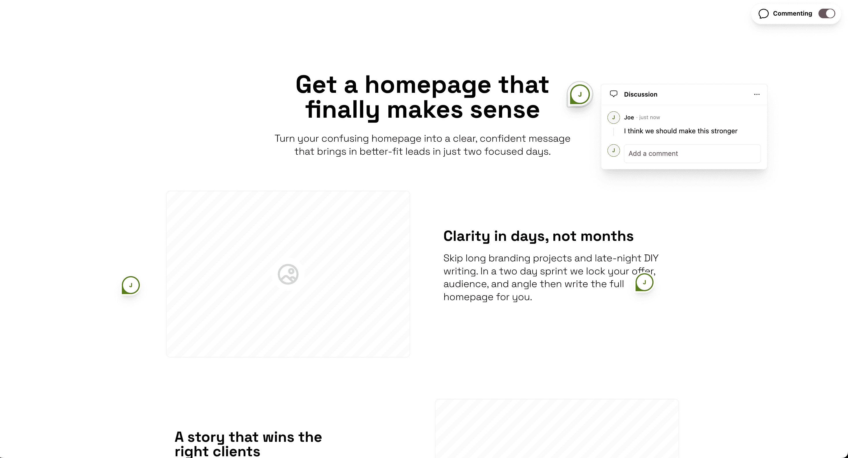 "Joe helped me get the clarity I’d been chasing for months. I had multiple good offers but I struggled to package them into something clear and compelling. Now I have a focused homepage that makes sense to me and my clients."